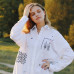 Вишита подовжена сорочка oversize-силуету з опущеною лінією плеча та класичним комірцем. Виконана з натурального лляного полотна чисто білого кольору. Має широкі рукави з глибокими манжетами, округлі бокові розрізи та застібку на світлі ґудзики. Вишивка розміщена асиметрично: на грудях, рукавах, спинці, подолі та комірці. Вишито контрастною чорною ниткою з акцентами глибокого червоного. Композиція поєднує геометричні символи та фрази з поезії, створюючи лаконічну, сучасну структуру.